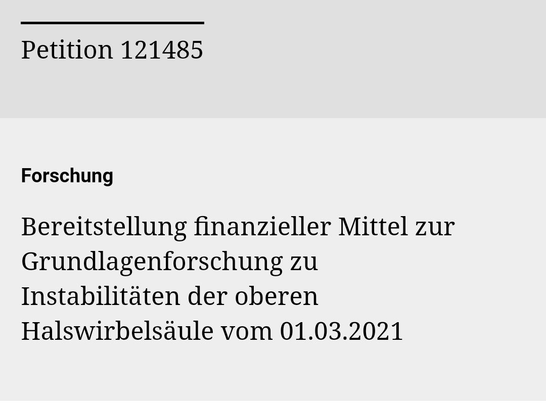 Vielleicht habt ihr es schon entdeckt, aber falls nicht: Simone Theisen-Diether, Autorin von „Wackelköpfchen“ und „Der HWS-Stammtisch“ startete vor einer Weile eine Petition zur Erforschung des Krankheitsbildes CCI/AAI. Habt auch ihr Lust zu unterschreiben? Bis 11. Mai habt ihr Zeit!