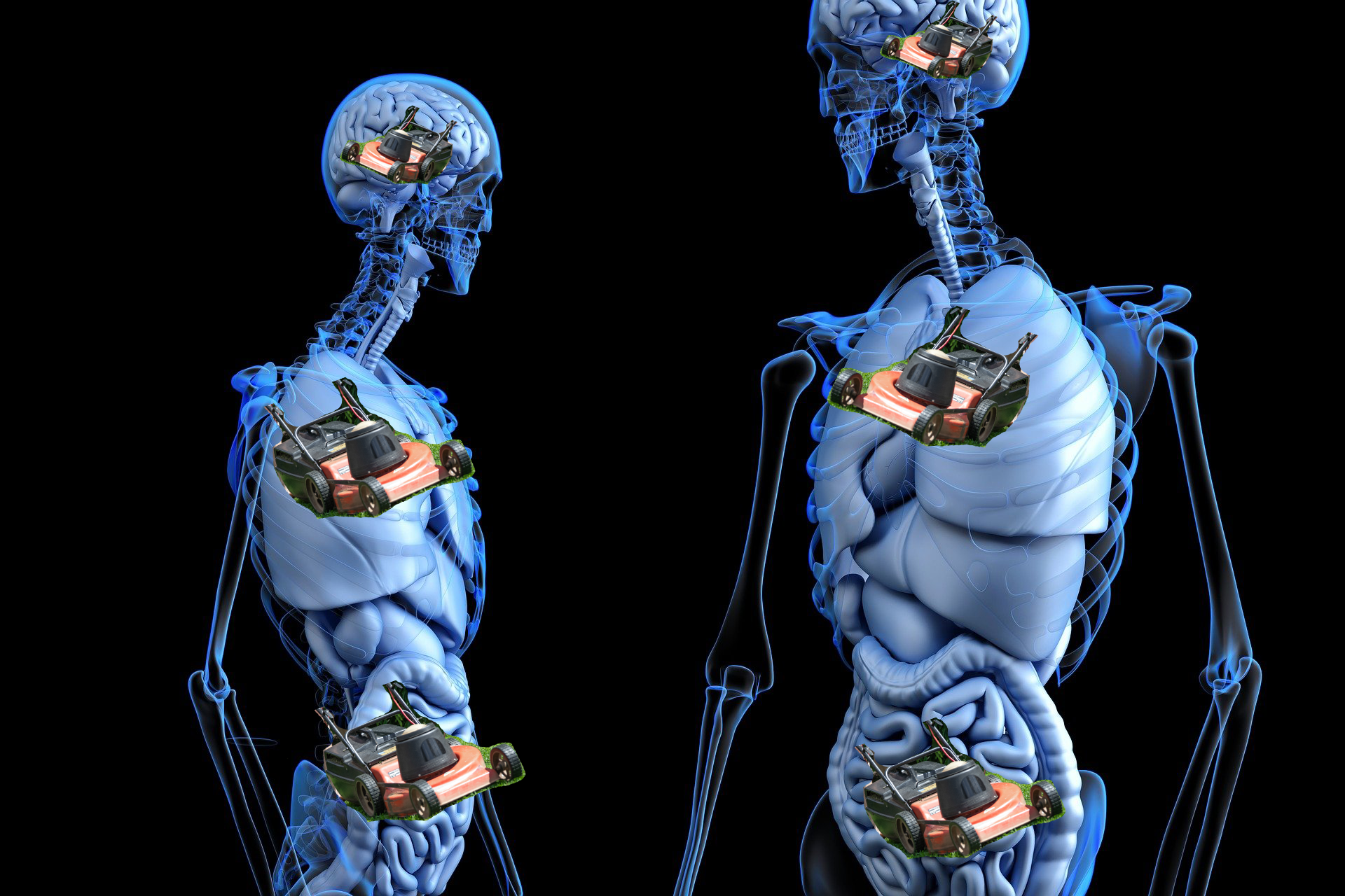 Gerade fällt es mir wie Scheunen von den Augen: Ich wollte doch beizeiten nochmal auf den ONOO–Zyklus eingehen, richtig? Also das Dingsbums in uns, das unsere Mitochondrien ärgert und kleckerhaft über den Körper verstreute Symptome verursacht. Müsste ich ein Bild aussuchen, um diesen fiesen Mechanismus zu beschreiben, würde ich sagen: Der ONOO–Zyklus ist, als hätte man eine Horde Rasenmäher verschluckt. Und genau die nehmen wir jetzt auseinander!