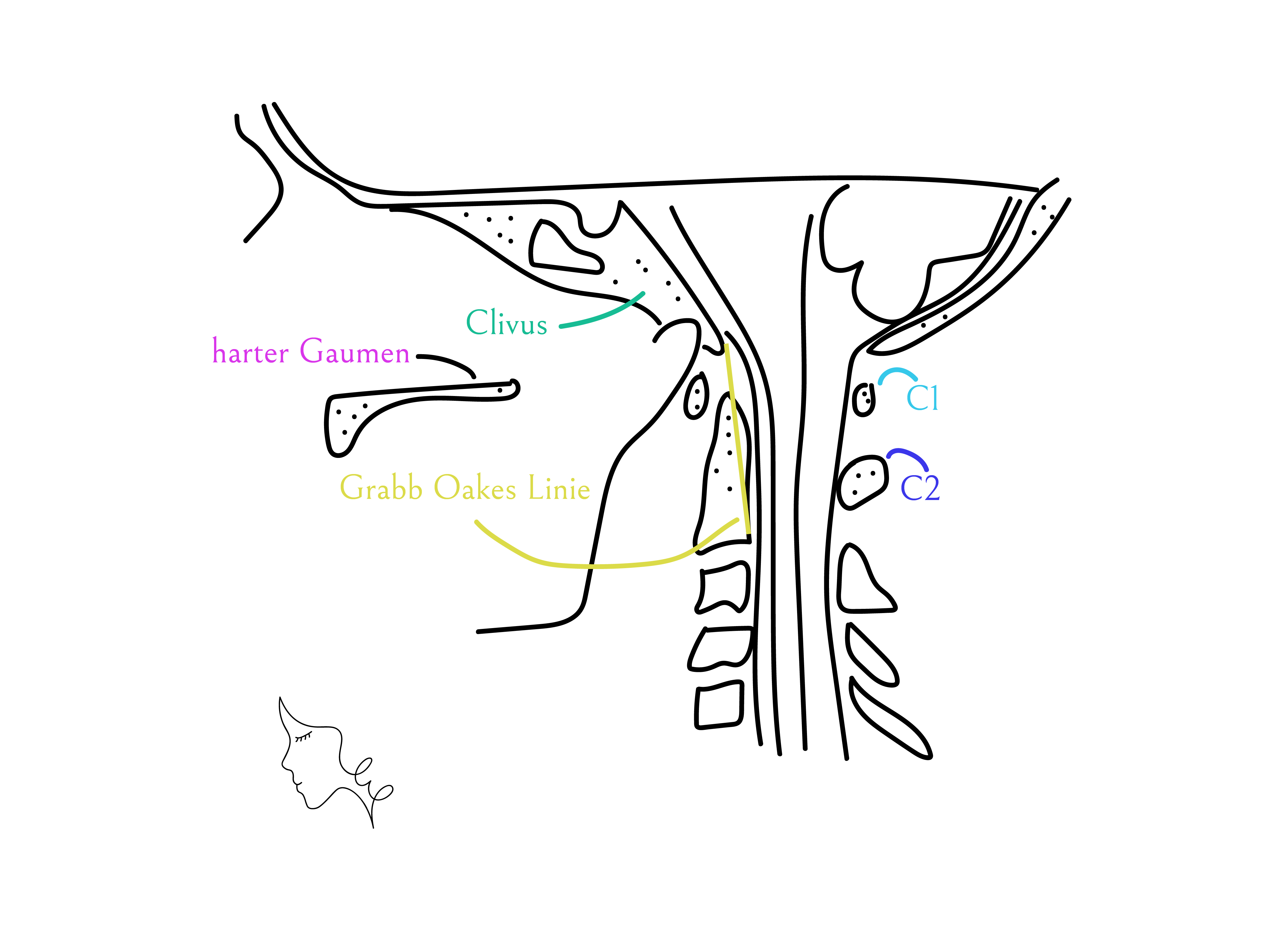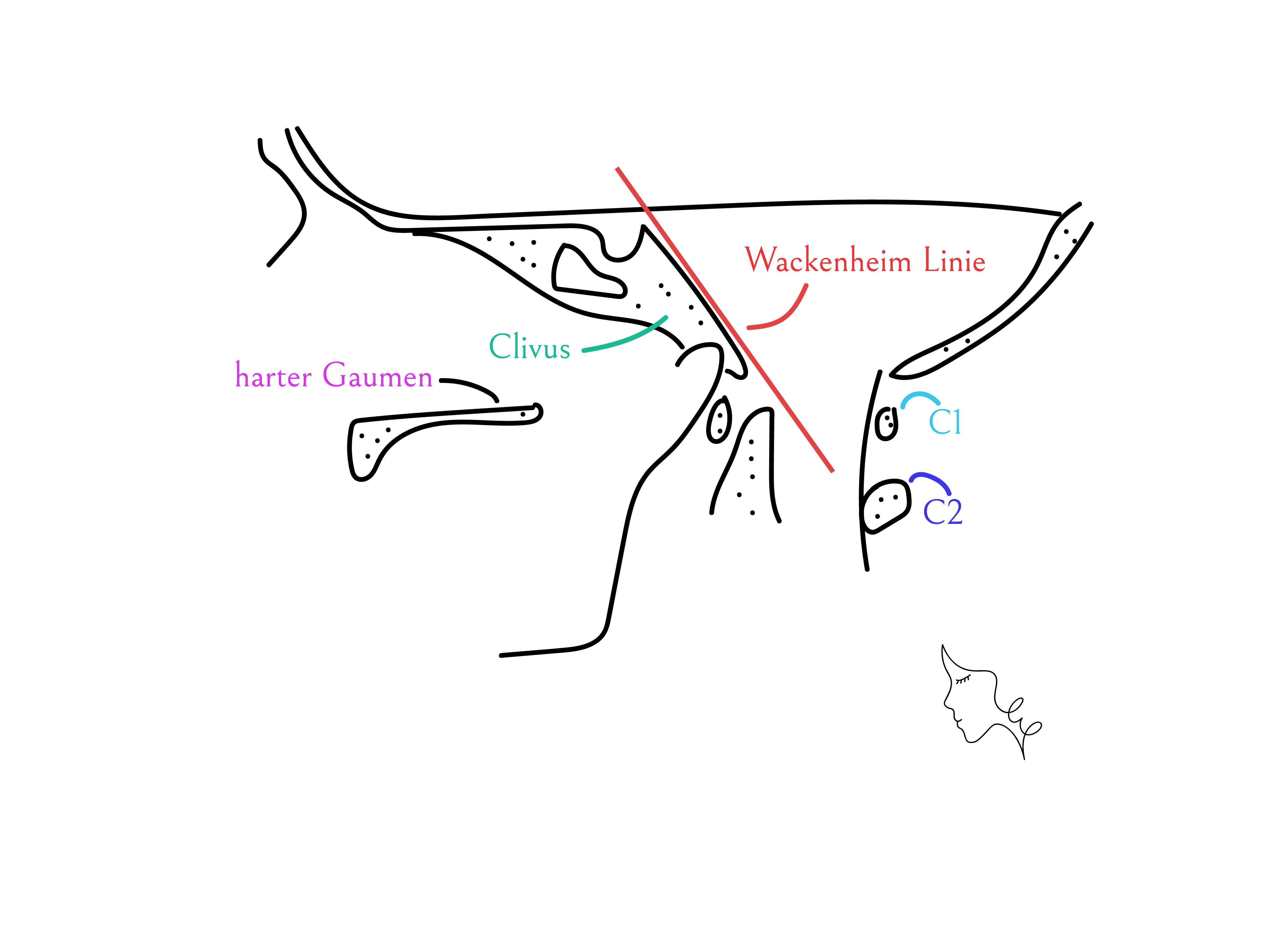 Linie, die den Verlauf des Clivus (= eine nach dorsal (hinten) abfallende knöcherne Struktur; trennt die mittlere von der hinteren Schädelgrube) fortsetzt. Sie sollte sich oberhalb des Dens axis befinden oder tangential zu ihm (Wackenheim, 1974).