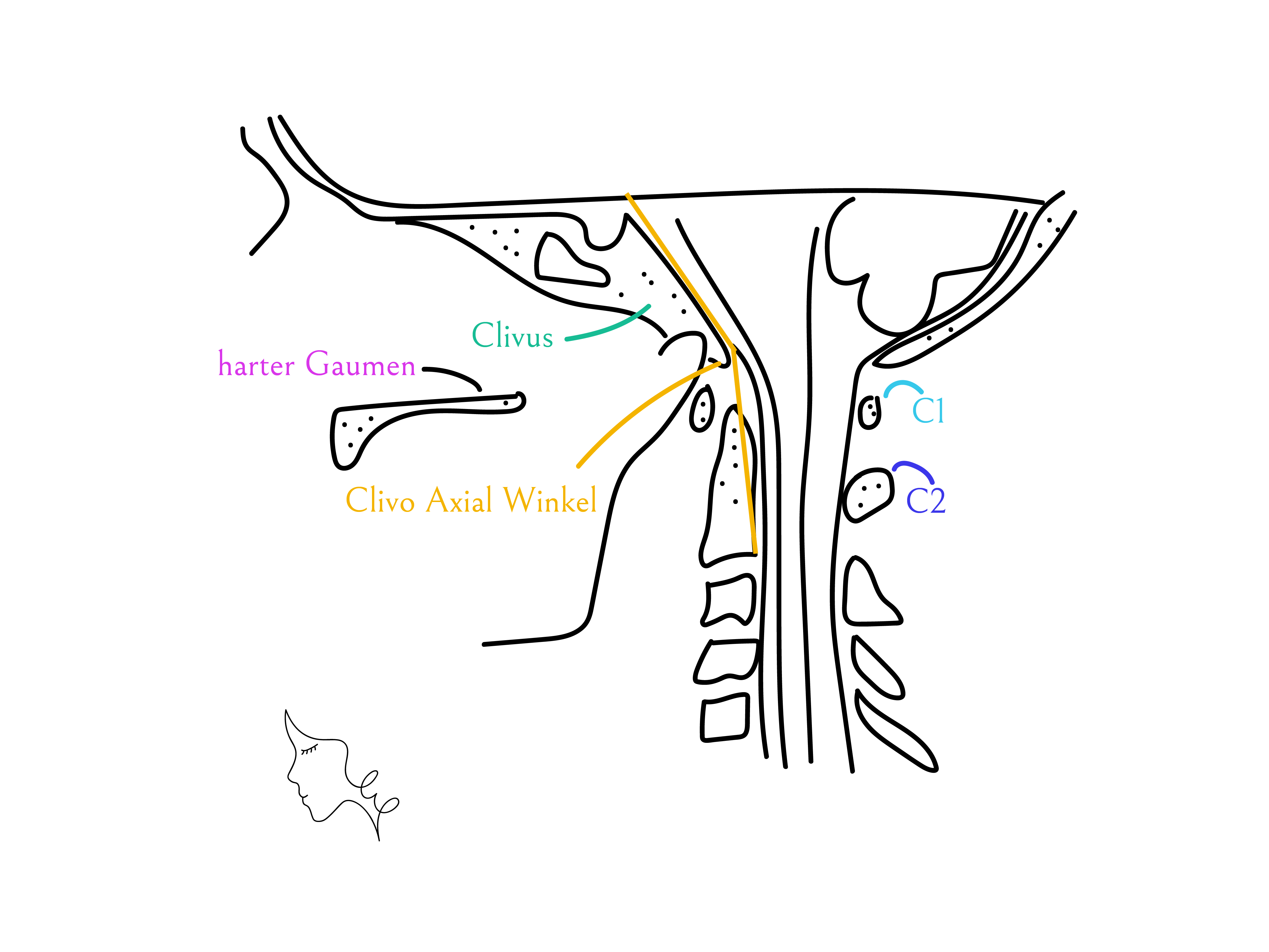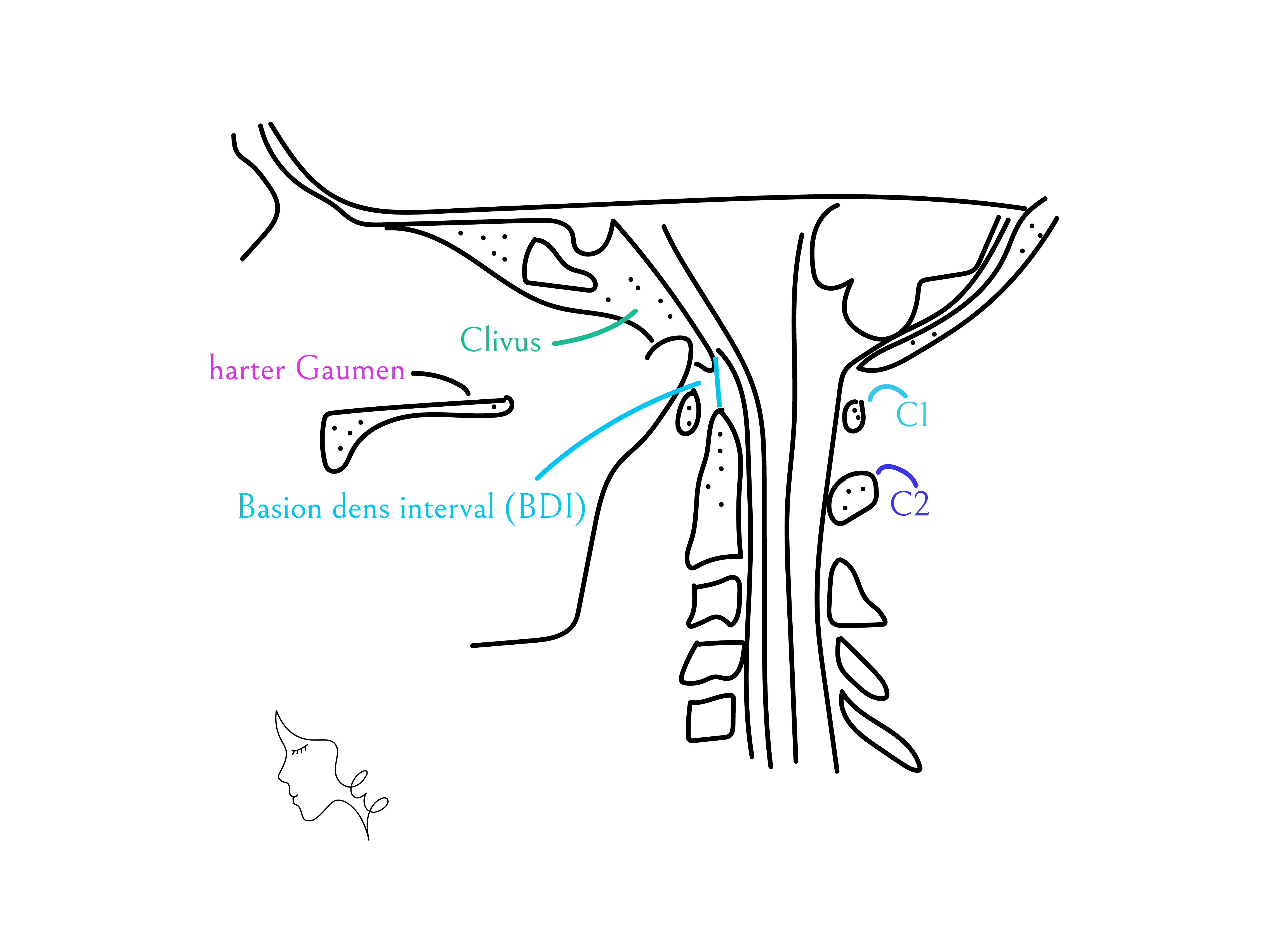 Das ist der horizontale Abstand zwischen Basion und posteriorer Axislinie.